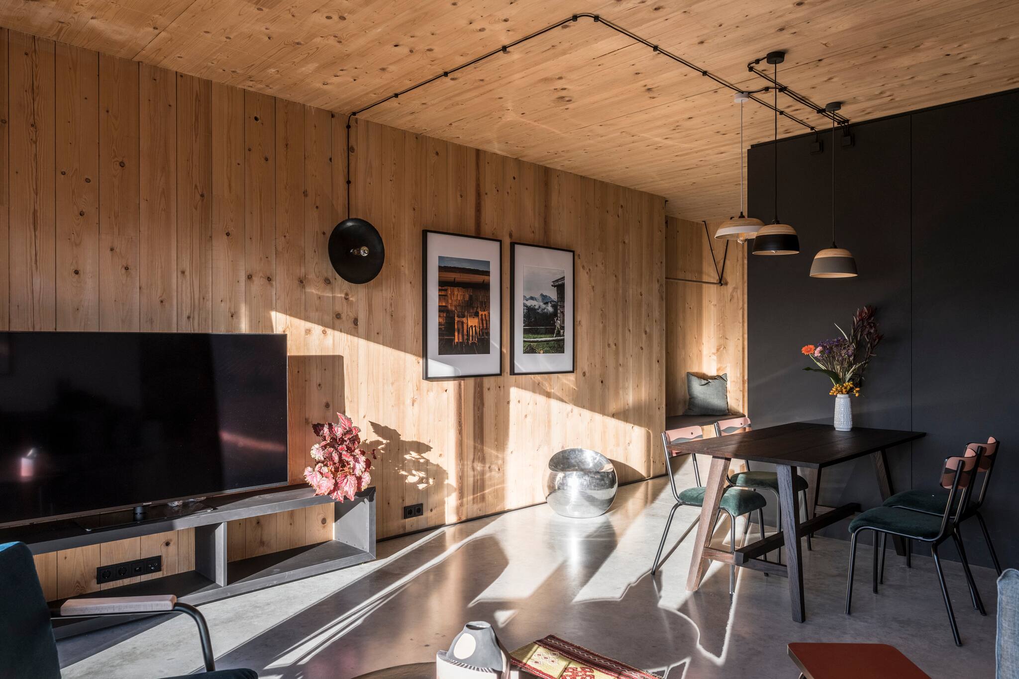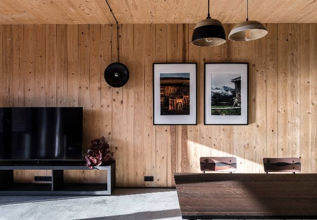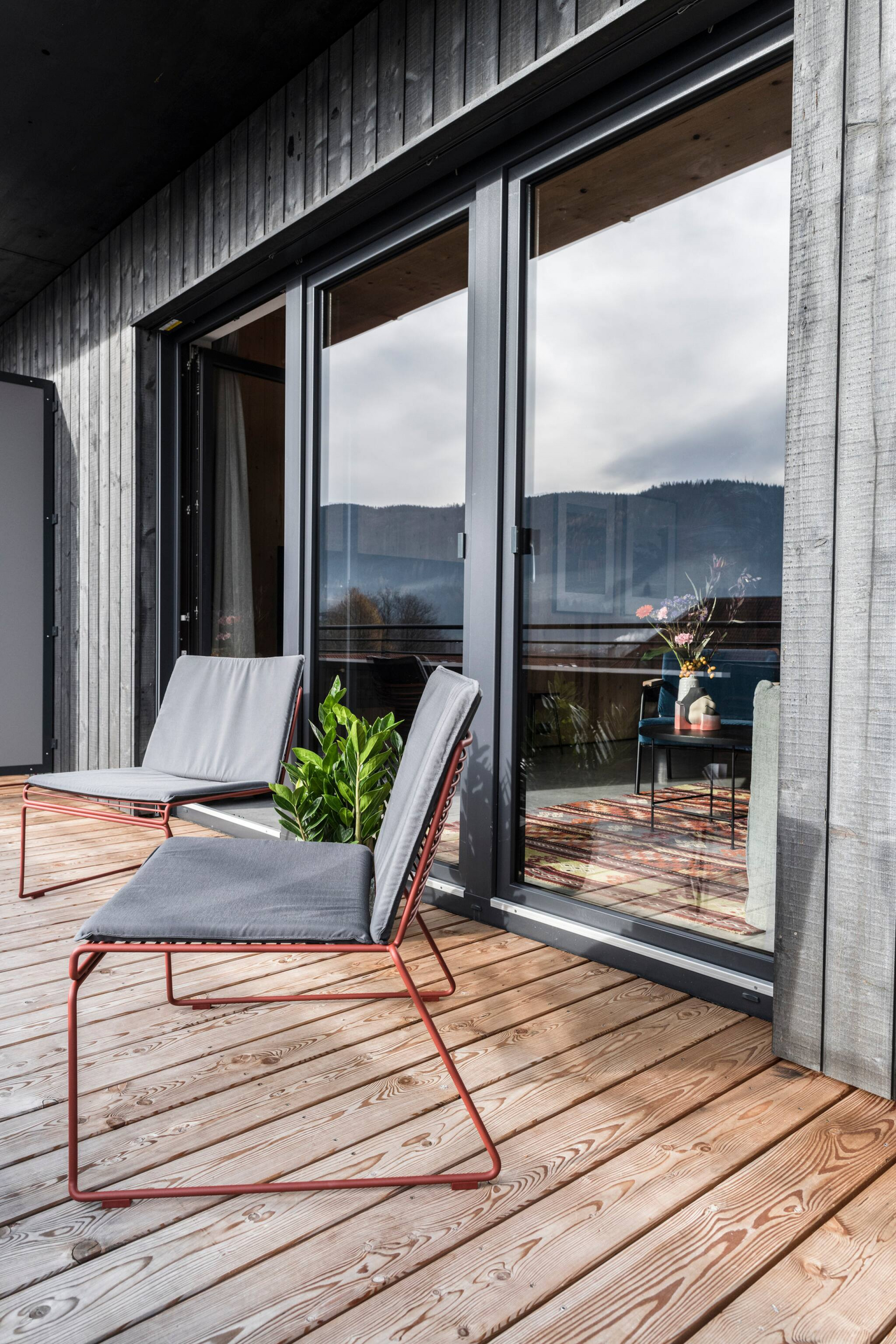 Die Kraft der Einfachheit trifft auf warme Materialien. Ideal für Coworkation - mit dem Mehrwert eines Coworking Spaces ein Stockwerk tiefer. Alle vier Wohnungen haben eine Holzterrasse, hier kann man nach einem langen Tag am Berg seine heisse Schokolade geniessen. Und so langsam den Sonnenuntergang vor dem Bergpanorama mit Brecherspitz & Ko. auf sich wirken lassen.